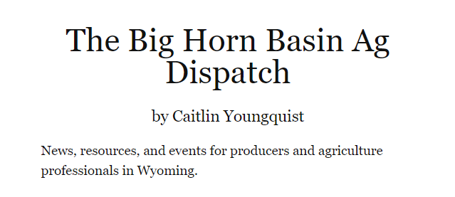 Dr. Caitlin Youngquist, out of Worland WY has transitioned from UW Extension to Farming, Composting, and some Consultation work. Her Bighorn Basin Ag Dispatch Newsletter proved an invaluable resource to many during her time with UW Extension. Lucky for us, Caitlin is continuing her newsletter on a broader scale. It is now encompassing Ag Events in Wyoming and the surrounding areas! You can sign up to receive her newsletter, and stay up-to-date on Agricultural Events in Wyoming and beyond HERE.