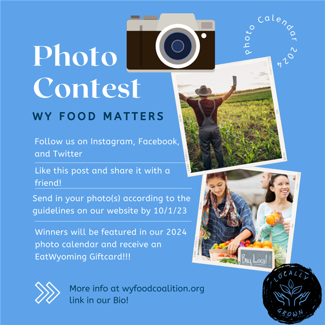 Contest Timeframe The 2023 Wyoming Food Coalition Local Food Calendar Photo Contest begins Monday, August 1st.